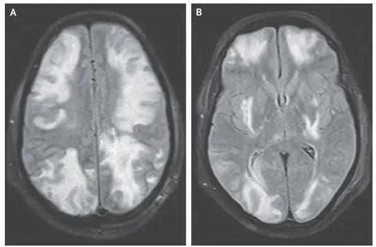 Caso clínico publicado no NEJM: Um homem de 35 anos com nefropatia por IgA procurou pronto-socorro com quadro de confusão mental, visão embaçada e convulsão há 01 dia. Duas semanas antes da apresentação ele começou a tomar ciclosporina para tratamento de nefropatia por IgA. Sua PA era de 160/80 mm Hg. Ao exame físico paciente